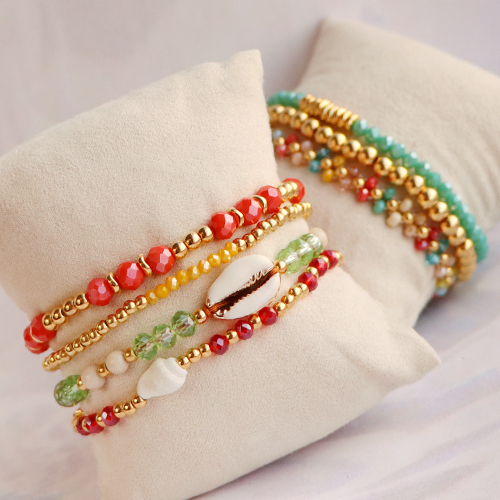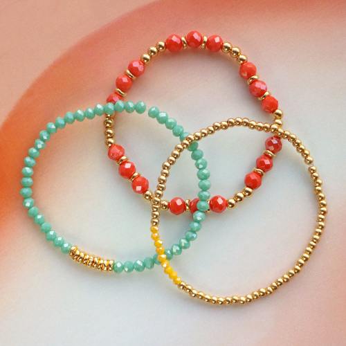 ¿En busca de bonitos abalorios para una colección de primavera que incluya pulseras? Estas cuentas facetadas quedan muy bien en el brazo porque las cuentas facetadas brillan al sol. Con hilo elástico o de macramé y abalorios metálicos DQ, podrás crear las pulseras más chulas en un santiamén. Lleva las pulseras juntas con una pulsera con sólo abalorios metálicos DQ para conseguir un ¡look súper elegante!