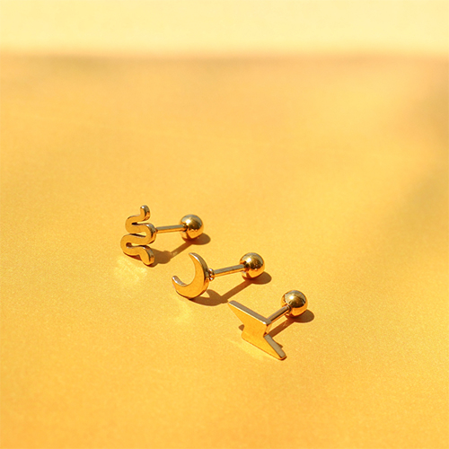 • Piercing oreja Acero Inox luna Dorado