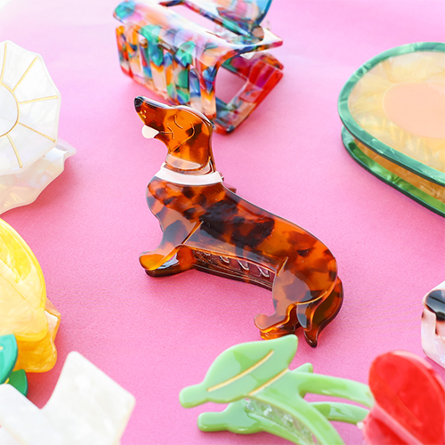 Accesorios pinza para el pelo perrito salchicha Marrón-nude-dorado