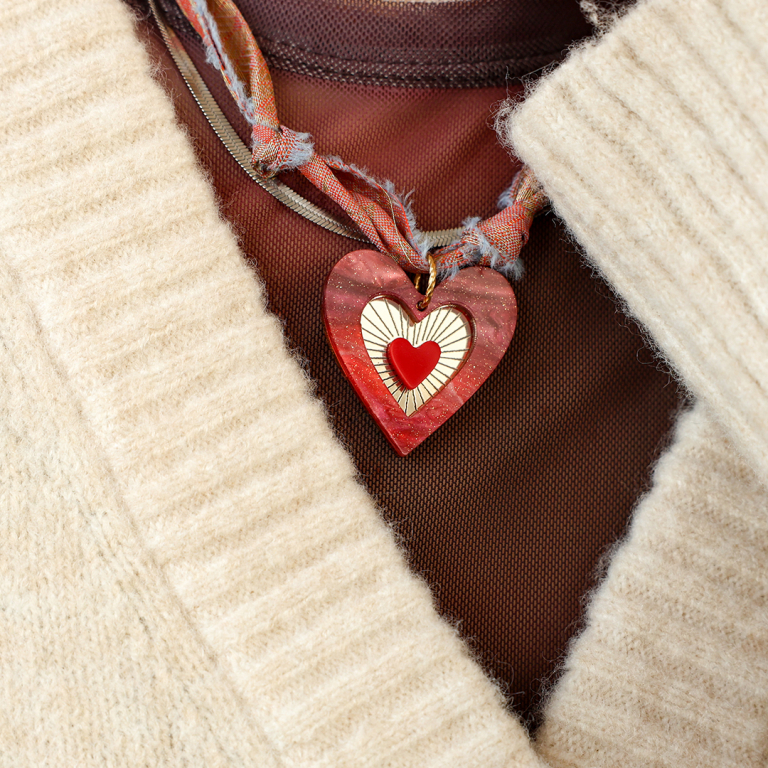 Colgantes llamativos corazón Púrpura-naranja-dorado