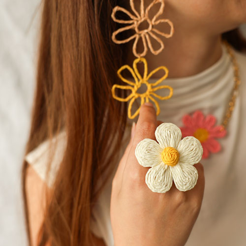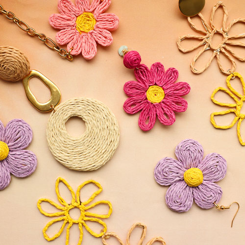Diseña collares, pendientes y anillos con colgantes y fornituras de rafia