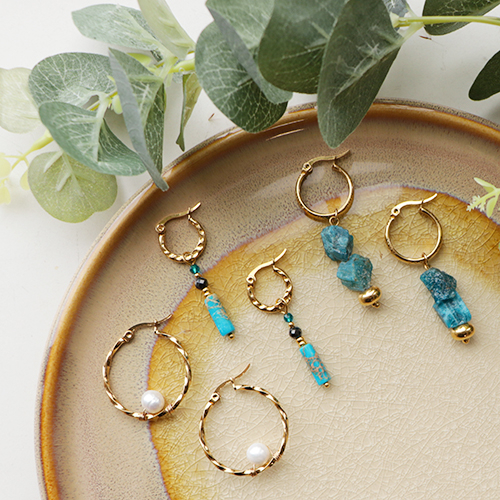Los pendientes de aro de acero inoxidable están listos para ser usados, pero también puedes añadir un toque personal. Para ello, puedes colgar un bonito colgante o crear tu propio dije con perlas de agua dulce, piedras naturales en bruto o piedras naturales facetadas. Los abalorios Miyuki con flores, también listas para usar, pueden unirse con un hilo de nylon y luego colgarse de un pendiente criolla/aro para dar un look elegante.