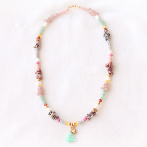 Nuestra nueva colección de Rocalla Preciosa puede servir perfectamente como 'base' en todos sus trabajos de joyería. Por ejemplo, nosotros utilizamos estas lindas cuentas para hacer un juego de collar con pulsera. Debido a que las Rocallas Preciosa están hechas de vidrio, nos pareció buena idea utilizar también otros materiales naturales. Por lo tanto, combinamos las rocallas con perlas de agua dulce y los abalorios chips. Al decorar el conjunto con detalles de oro y borlas se obtiene un ¡efecto muy atractivo!. Gracias al gran colorido que estas piezas brindan lograrás un estilo muy personal en tus sets de joyería. ¡Prepárate para brillar al máximo con estos accesorios!