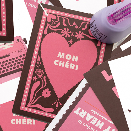 BY31® Tarjetas para joyería "Mon chéri" Marrón oscuro-rosa oscuro-beige
