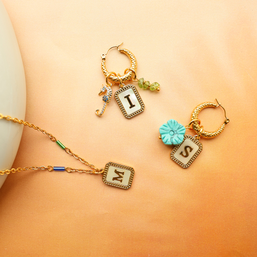 Esta nueva colección de colgantes de concha en acero inoxidable está disponible en todas las letras. Perfecta para crear collares combinados con perlas de vidrio, cadenas jasseron y piedras naturales chipstone o para pendientes con flores de piedra natural y aros. ¡Añade un toque personal y exclusivo a tus joyas con estos versátiles colgantes!