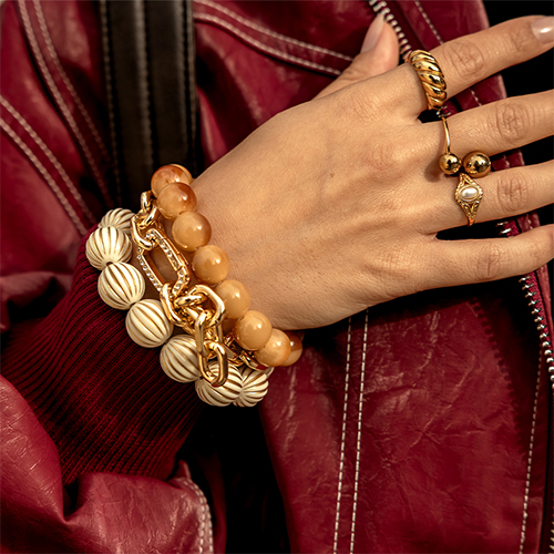 • Pulseras metálicas con imitación de perlas Dorado-blanco