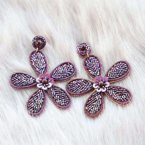 Pendientes trendy con abalorios de vidrio flor Berenjena