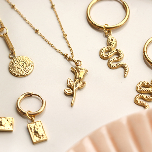 ¿En busca de inspiración para incorporar diversos colgantes en tus creaciones de joyería? En este set de inspiración te mostramos cómo puedes hacer elegantes collares y pulseras con colgantes de acero inoxidable. Una forma estupenda de diseñar un collar según la última tendencia es crear un collar en capas. Esto es una cadena doble o triple donde cada cadena tiene una longitud diferente. Se hacen 2 o 3 cadenas Jasseron y abalorios, que se fijan finalmente a un cierre. Incorpora diferentes tipos de Jasseron para un resultado súper elegante y a la moda. Combina cadenas finas o gruesas con colgantes para crear pulseras. Puedes fijar el colgante a la cadena, pero también al candado. Completa tus joyas con materiales de acero inoxidable como: anillas, cierres y cadenas de extensión para una colección de joyas de alta calidad.