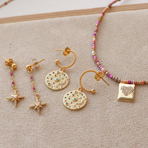 Estos colgantes de latón dorado quedan muy bien cuando se combinan con una cadena jasseron. Crea un lindo collar con cierre reasa marinera con tu cadena favorita. Puedes llevarlo en la parte delantera y colocar uno o varios colgantes. También puede hacer 3 collares de diferentes longitudes: 1 con jasseron, 1 con cuentas de vidrio rocallas y 1 con jasseron de acero inoxidable de colores. Cuelga tus colgantes en las cadenas y tendrás un set muy original. Otra opción es utilizar diferentes tipos de pendientes criolla/aro para fijar tus dijes.
