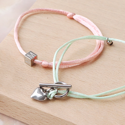 ¡Es hora de un nuevo set de inspiración! Por eso nos pusimos a trabajar con hilo de satén y conectores de acero inoxidable, para hacer pulseras de moda. Empieza por elegir tu color favorito de hilo de satén. A continuación, haz un lazo con el hilo de satén en ambos lados a través de la entrepieza. Para garantizar que la pieza central se mantenga en su sitio, puedes colocar un abalorio de acero inoxidable en el hilo por ambos lados. Después, cierra la pulsera con un nudo corredizo. También puede utilizar un cierre de anilla y perno para alternar los tipos de cierre. Las pulseras son fáciles de montar de varias maneras, incluyendo componentes de acero inoxidable como cuentas, colgantes y abalorios acrílicos. Para resaltar la belleza de estas creaciones combina con una pulsera de rocallas y perlas de agua dulce y una pulsera de cadena Jasseron. ¡El resultado te encantará!