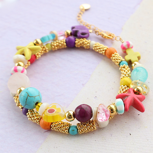Esta nueva línea de abalorios de piedra natural howlita está disponible en varios tamaños y formas y en bellos colores. Las cuentas son perfectas para crear pulseras, collares u otras joyas para la playa. Divinas para combinar con cadena jasseron y perlas de agua dulce.