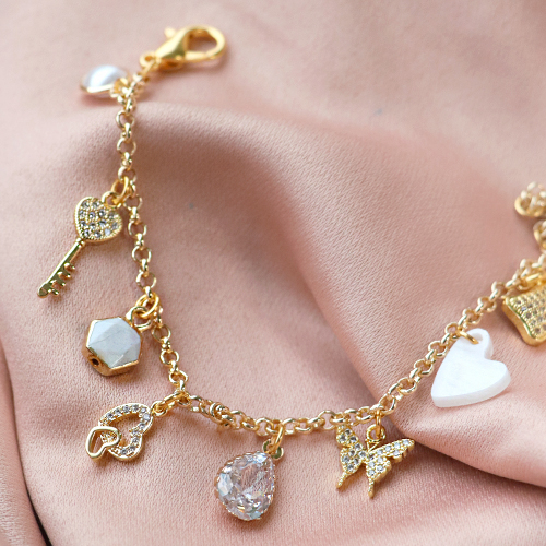 Pendientes y pulseras de tendencia con colgantes y entrepiezas con zirconia: