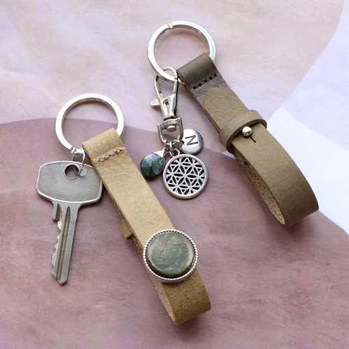 Si te gusta crear llaveros personalizados, esta nueva serie de llaveros Cuoio es para ti. Es muy fácil fijar los cabuchones Cuoio a los llaveros de cuero. ¡Descubre la colección de cabujones del surtido! En la parte inferior del llavero puedes colocar un bonito dije DQ o una piedra natural, que puedes transformar fácilmente en un dije con un bastón metálico de cabeza plana. No dude en utilizar los colgantes de las letras para personalizar aún más su llavero.