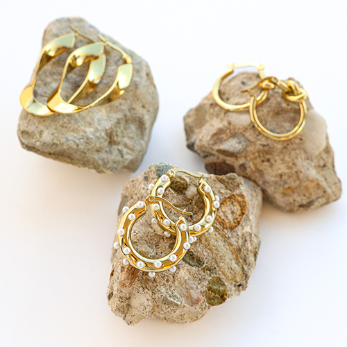¡Esta nueva colección de pendientes de acero inoxidable es un verdadero imprescindible! Disponibles en varias formas elegantes y en los colores clásicos oro y plata, estos aretes son el complemento perfecto para tus colecciones de joyas!