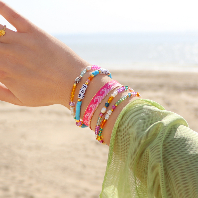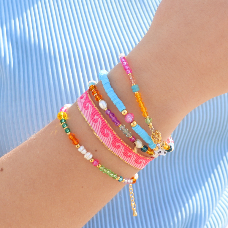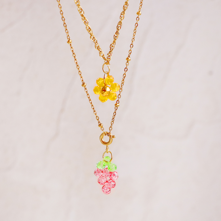 Esta nueva gama de abalorios faceteados de diversas formas, tamaños y colores es perfecta para la bisutería veraniega. Podrás diseñar pendientes largos y alegres pulseras o crear colgantes de frutas con cerezas o uvas y sujetarlos a una bonita cadena de jasseron.