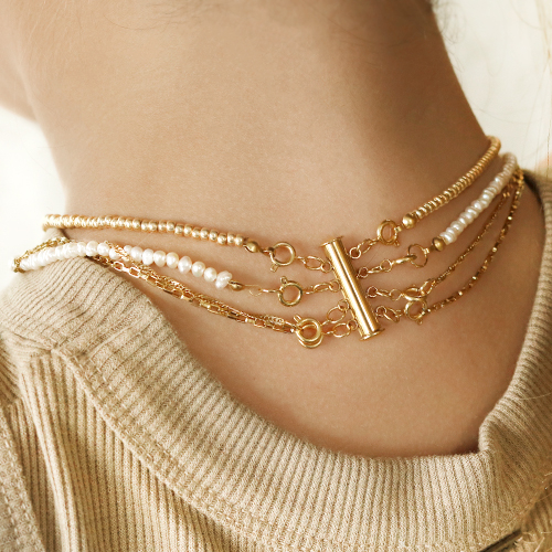 Con estos prácticos componentes de acero inoxidable de alta calidad, podrás crear hermosa joyería. Puedes crear, por ejemplo, un collar de varias vueltas con un cierre al que se pueden unir tres cadenas. Crea un collar largo con la cadena jasseron y cuelga una cuenta cilíndrica, que puedes convertir en colgante, con un bastón metálico de bola. Haz dos collares más cortos con perlas de agua dulce y rocallas para hacer flores. Los llaveros son súper bonitos para utilizarlos en proyectos con hilo macramé o hilo encerado.