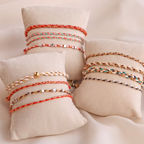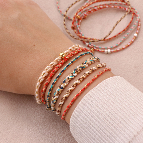Cordón trenzado trendy 2mm Dorado-naranja rojo blanco