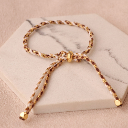Cordón trenzado trendy 2mm Dorado-marrón