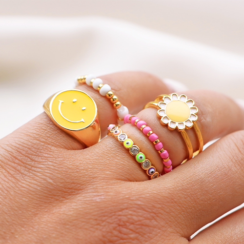 • Anillos Must-have esmalte smiley Rosa-dorado
