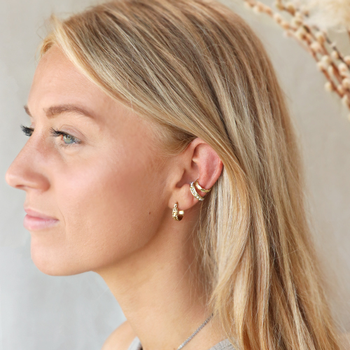 ¡Estos pendientes cartílago o también conocidos como ear cuff están muy de moda! Además, están disponibles en oro y plata, vienen con perlas o zirconias. Sigue la tendencia y lleva varios pendientes al mismo tiempo. También puedes combinar los pendientes cartílago con otros pendientes, como los de aro, para conseguir un look de súper tendencia.