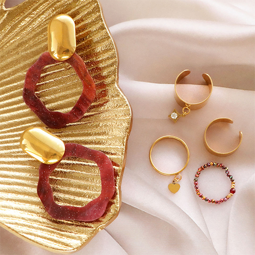 • Colgantes tejidos con hilo macramé y abalorios faceteados gota Dorado-rojo metálico