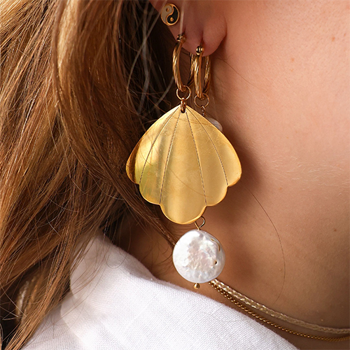 Pendientes Acero Inox concha Dorado