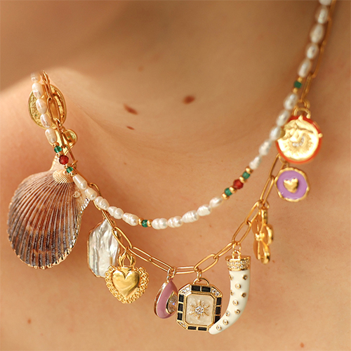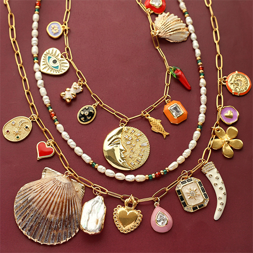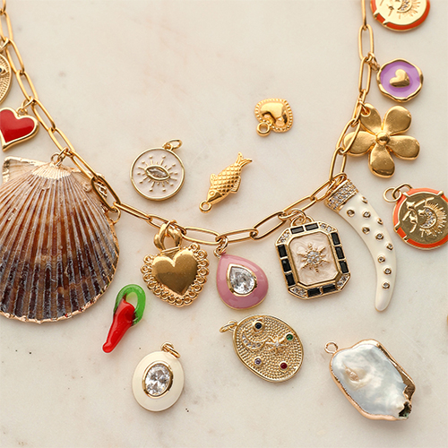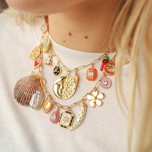 Déjate inspirar y descubre la tendencia del momento: ¡los colgantes! La creación de collares y pulseras con varios tipos de colgantes es una tendencia que se ve por todas partes y que no puede faltar en tu colección. Elige una mezcla de colgantes y cuélgalos, por ejemplo, de una cadena jasseron para crear un llamativo collar estilo statement.