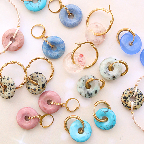¿Eres amante de la joyería con un look exclusivo? Entonces tienes que utilizar estos preciosos colgantes de piedra natural disco. Los colgantes le darán a tus diseños de joyería un estilo único provocando así un absoluto ¡wow-factor! Para empezar, puedes deslizar los colgantes de piedra natural disco sobre una parte del pendiente como un pendientes criolla de acero inoxidable y ¡listo! O también puedes usar jasseron pasándolo a través de la piedra natural y luego pegándolo al ojo del pendiente. De este modo le das un toque extra a tus pendientes.Con el hilo de satén puedes hacer fantásticas pulseras. Usa los dos trozos de hilo y gira o anuda esto en el colgante a tu manera. Cierra la pulsera con un nudo corredizo. ¡Buena suerte con estos consejos e inspiración!