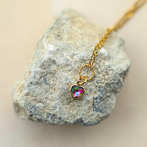 Colgantes de cristal corazón Verde esmeralda-dorado