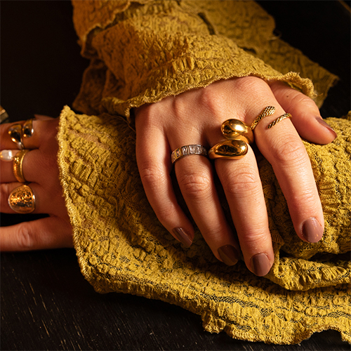 Anillos Acero Inox con piedra natural Dorado-marrón dorado