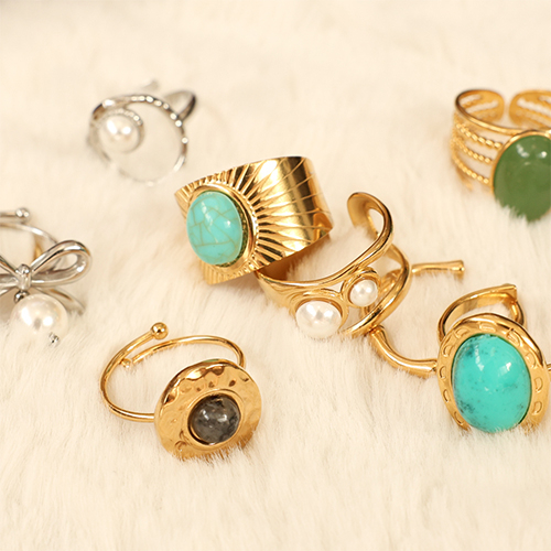 Anillos Acero Inox con imitación de piedra natural Dorado-turquesa