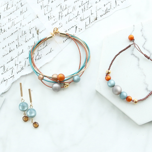 Preciosos pendientes y pulseras en colores cálidos con abalorios Polaris Elements