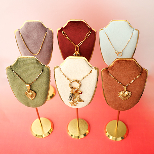 Nuestros nuevos expositores son hermosos, elegantes e ideales para exhibir tu colección de joyas. Disponibles en formas como cuello, oreja, flor y corazón, y en bellos colores como blanco, verde, azul y rojo borgoña. ¡Dale a tus joyas la presentación que merecen con nuestros elegantes expositores!