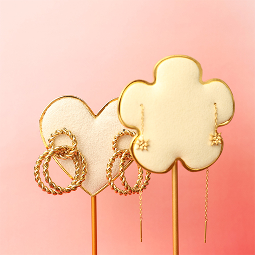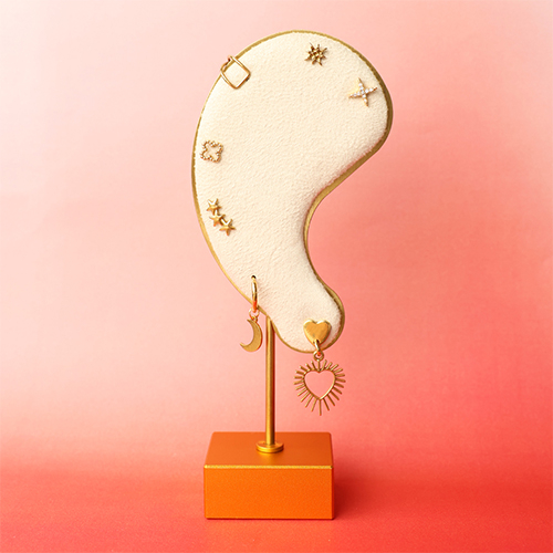 Expositor de joyería corazón para pendientes Opaco blancuzco-dorado