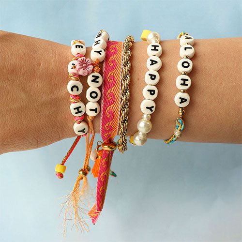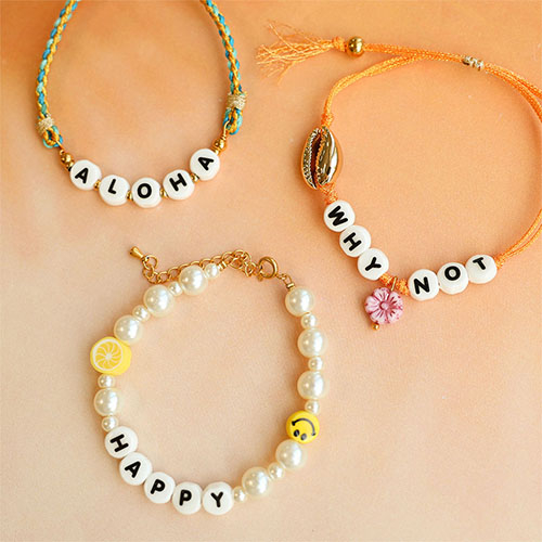 Esta nueva colección de abalorios de letras en cerámica es perfecta para crear joyas personalizadas. Enfila en cordón trendy, úsalas como dije en una pulsera de cinta, o combínalas con cuentas de acrílico y frutas de polímero para pulseras veraniegas.