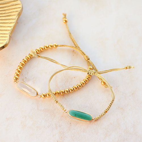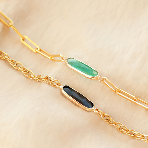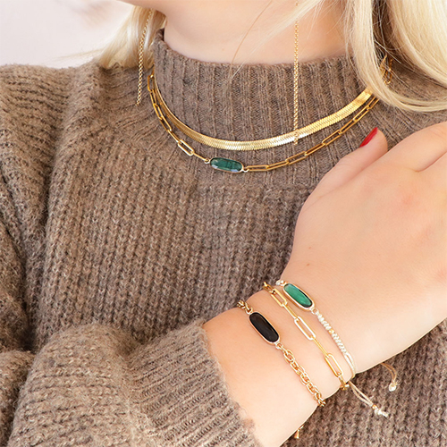 Puedes incorporar estas entrepiezas de cristal en toda tu bisutería. Elige una cadena jasseron gruesa para un collar llamativo que incluya 1 entrepieza. Con el jasseron, también puedes crear pulseras de esta manera. Combina estas pulseras con una pulsera de abalorios metálicos DQ grandes o con una pulsera de hilo de macramé. Elige tus pendientes favoritos a los que unirás las entrepiezas con una anilla y cuelga una cadena jasseron larga en la parte inferior para conseguir unos ¡pendientes statement de moda!