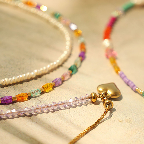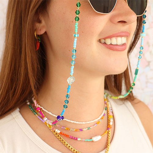 Esta nueva gama de abalorios faceteados bicónicos y en tubo se puede utilizar para toda tu bisutería. Combina los abalorios faceteados con abalorios de cristal, perlas de agua dulce y cuentas de polímero para crear collares apilables o ¡un moderno cordón para gafas de sol!