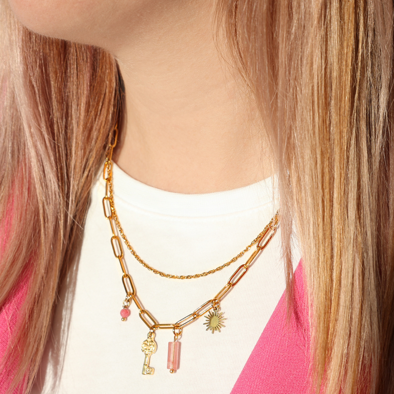 ¿Estás pensando en crear una colección de collares? Con estas cadenas de acero inoxidable, diversos abalorios, bastones metálicos y cierres mosquetón, podrás crear los collares más bonitos en un santiamén. Elige diferentes piedras naturales y utiliza un bastón metálico para convertirlas en un bonito colgante. O elige colgantes de acero inoxidable y colgantes de Crystal Glass de la colección, que se engancharán a la cadena con un mosquetón para que puedas ¡mezclarlos y combinarlos fácilmente!